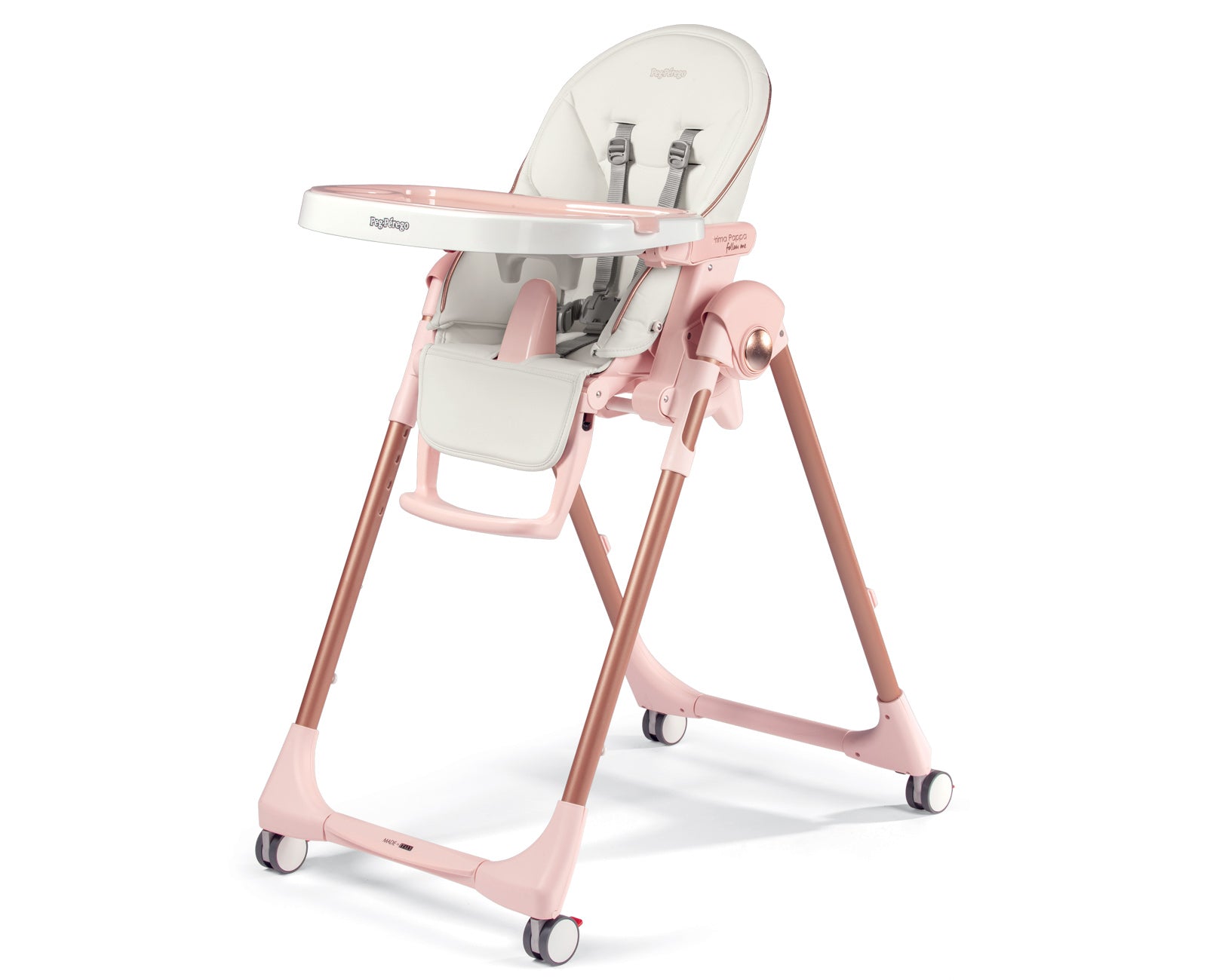 Il seggiolone Prima Pappa follow me è omologato dalla nascita per essere utilizzato anche come comoda sdraietta. Con le sue 4 ruote, Prima Pappa follow me ti segue ovunque.